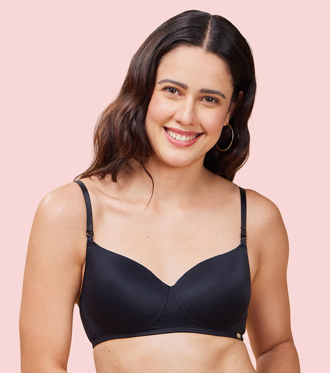 Enamor Everyday Balconette T-Shirt Bra - Eco fabric, Padded, Wirefree, Medium Cover